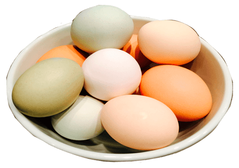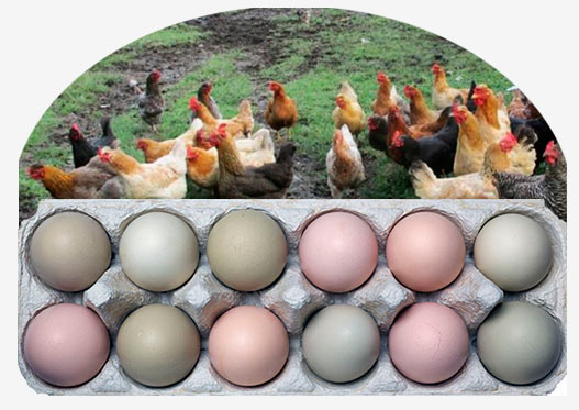 Venta de huevos de colores 100% orgánicos de gallinas libres alimentadas con granos y verduras.